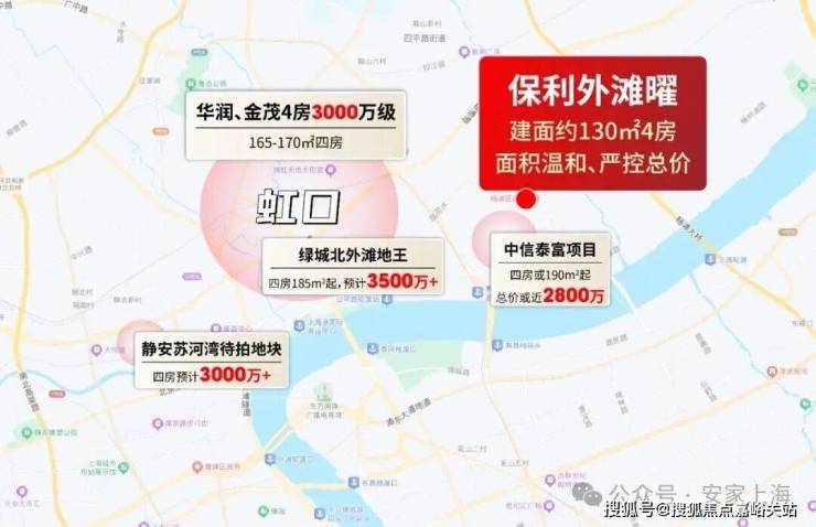 虹口华润和金茂新项目,单价预计15.5-17 万/㎡,四房起步165平,总价奔 3000万级 ;杨浦内环中信泰富项目,四房面积或180平起步,总价预计近 2800万 ;静安苏河湾的地块,未来四房总价妥妥 3000万 以上。