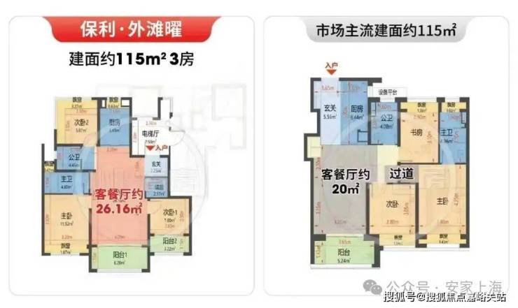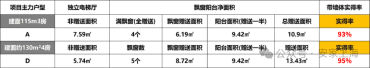 建面约115㎡3房, 实得率约93%! 常规的同面积产品,也不过约80%上下。