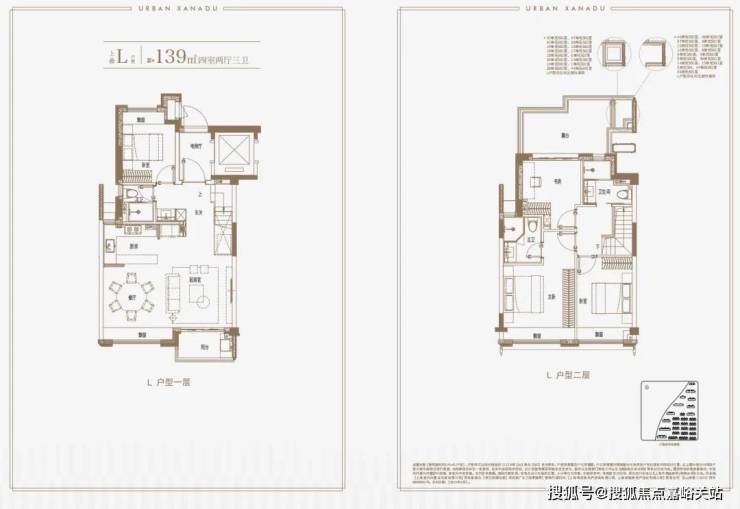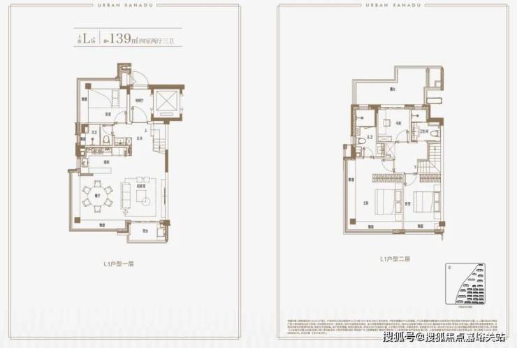 建面约139㎡上叠户型,三层是会客区,四层是居住区,阳台+露台+多个飘窗设计,附加空间非常大,在别墅类产品中实属罕见!