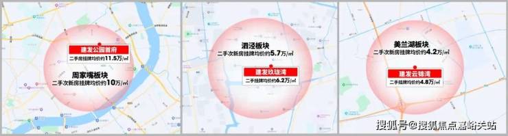 比如周家嘴路的建发公园首府二手挂牌均价11.5万/㎡,高出其他同龄板块次新小区近 1.5万/㎡。再比如泗泾、美兰湖等板块的建发作品,挂牌价同样能高出同板块次新小区 10-15%。