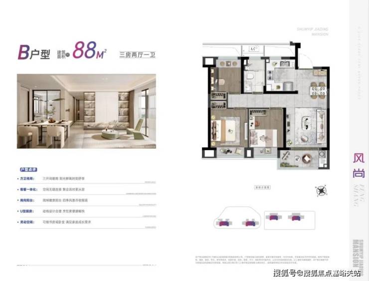 深嘉上府以88-99㎡的明星爆款小户型,圆年轻人的置业梦想。其中,88㎡户型以三房两厅一卫的格局,兼具功能性与尺度感。南向三开间,做到两间卧室朝南,这样的面宽,媲美市面上100㎡户型的新房尺度。u字形的厨房,动线合理。餐厅空间,能够从容摆放一张四人大餐桌。 全屋飘窗设计,将赠送空间拉满。 深嘉上府售楼处电话:400-8894-638