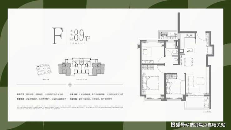 1、全部南向大面宽设计,保证最为出众的采光和视野需求;