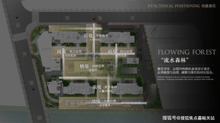 五大空间,景观由北向南, 通过“一步一景”的设计手法,打造现代居住景观多维渗透式的人居体验。