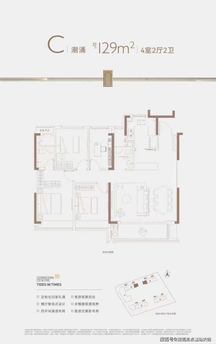 建面约129㎡真4房产品,并且四开间朝南的设计,这个户型的南向面宽和尺度感堪比别墅。