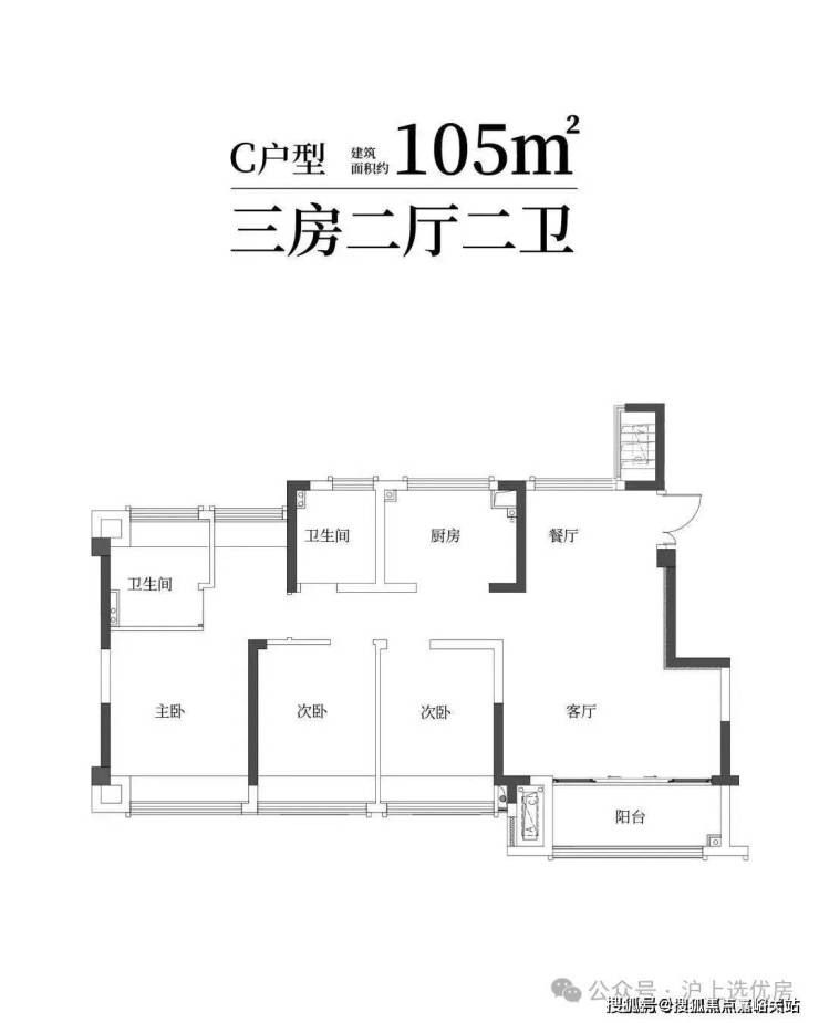 建筑面积约73㎡舒适两房一卫,年轻家庭的向往;