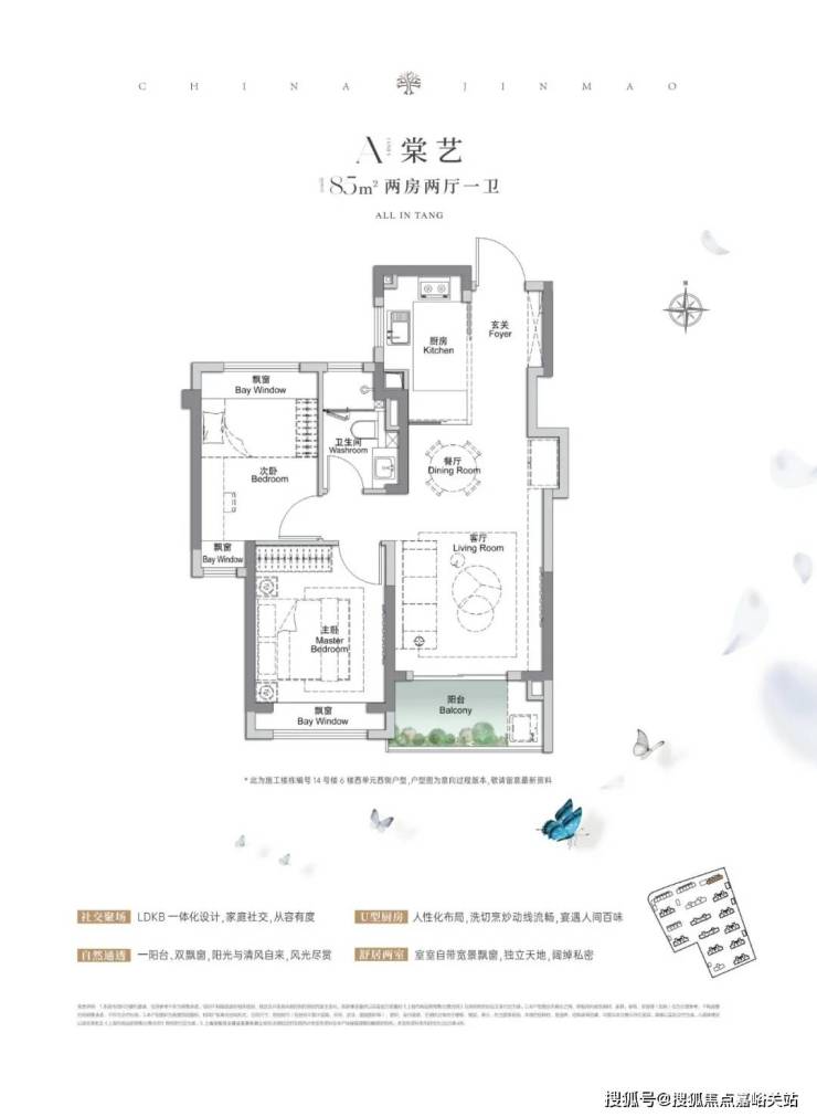 建面约85㎡2房2厅1卫 ,做到了 双开间朝南+3个飘窗+LDKB一体化设计 ,附加空间非常多。