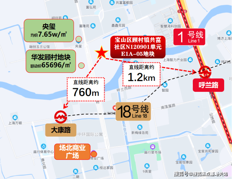 项目东至顾佑路、南至胡宝路、西至E1A-04地块(生产防护绿地)、北至E1A-03地块(生产防护绿地),与华发地块一街之隔。