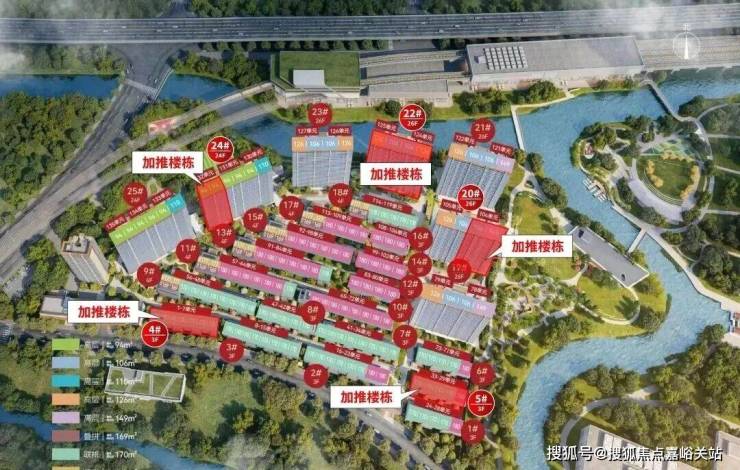 高层住宅沿地块西、北、东三侧分布,靠近崧泽大道,多层及低层住宅则位于地块中心区域,形成错落有致的天际线。