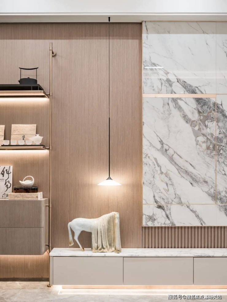 为此项目精选钢木复合门、臻选雅艺壁布、自然木饰面、全景一体化岩板背景墙等精奢材质,搭配充满仪式感的氛围灯带、打磨移门、踢脚线、过门石等每一处细节。同频全球当代极简审美的艺术美宅呼之欲出!