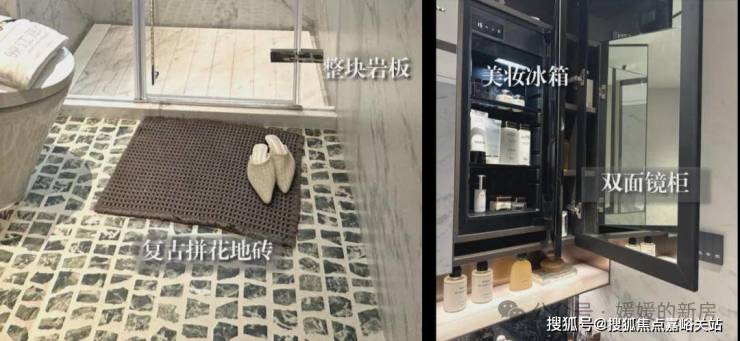 卫生间臻选普拉达绿、雅士白、雪花白、宝格丽紫奢石,纹样大气,品位素颜,展现恒久的气质。同时臻选的海派美学金属镜柜,嵌入美妆冰箱,以精微的细节,演绎矜贵的格调。 ☑️☑️华润映江润府售楼处电话:400-1183-605☑️☑️