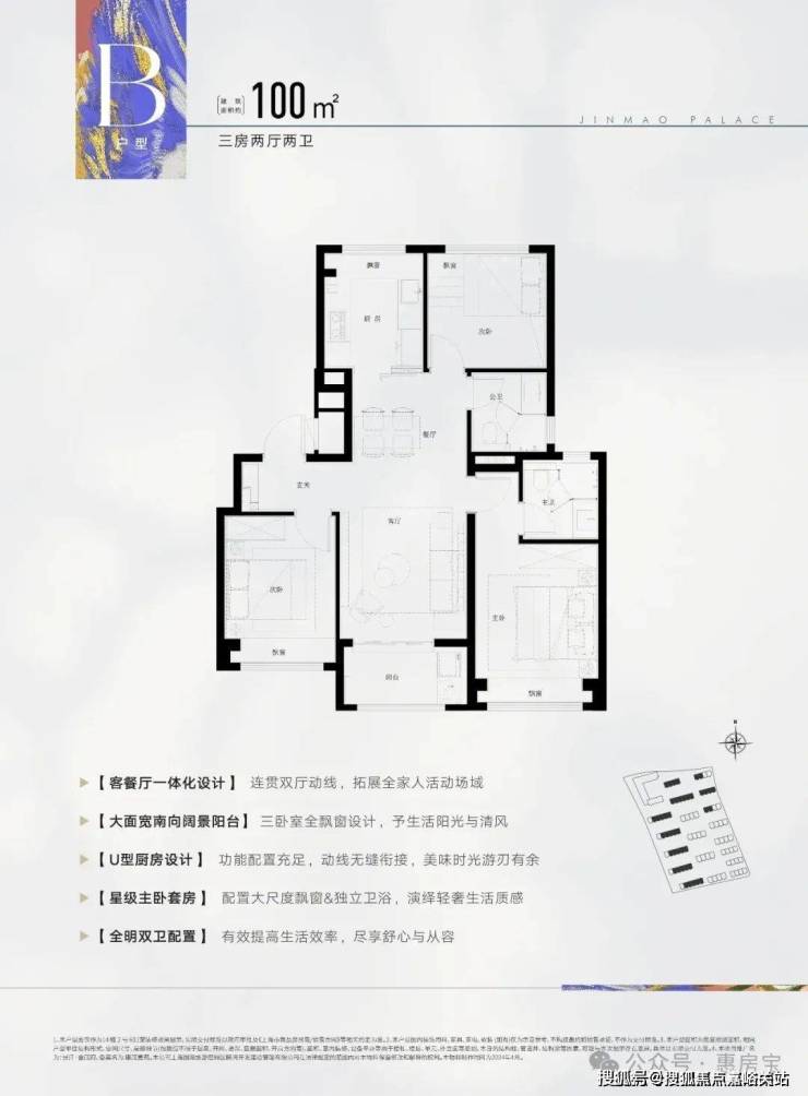 户型优选南北通透方正布局,开间与进深比1:1.5为佳,避开暗卫设计。