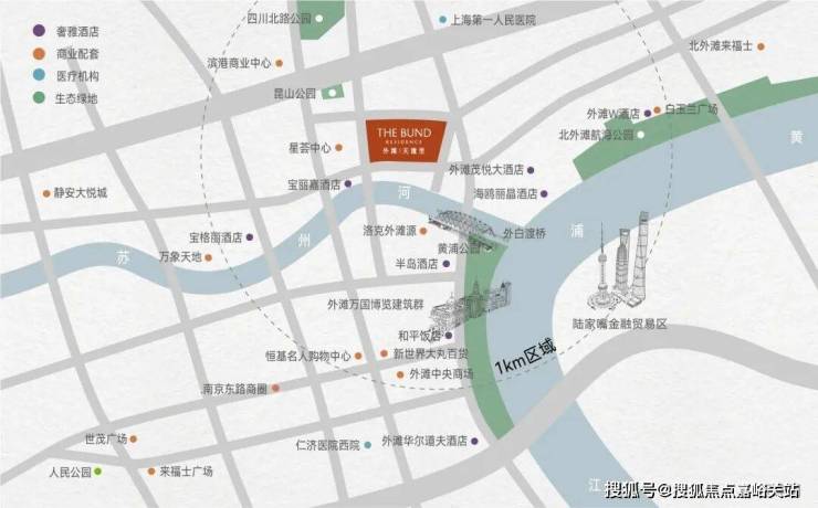 商业:外滩、南京东路、苏河湾万象天地、北外滩来福士等商圈环绕
