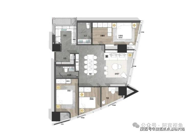 主卧东面采光,宽奢套房设计,独立卫生间双面盆设计,超大衣帽间配置;