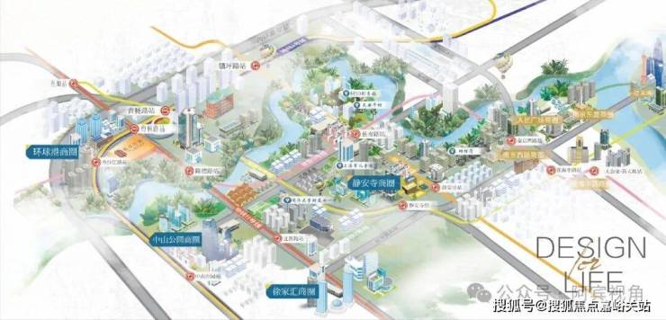 陆家嘴金融贸易区、世博源、徐家汇、虹桥枢纽