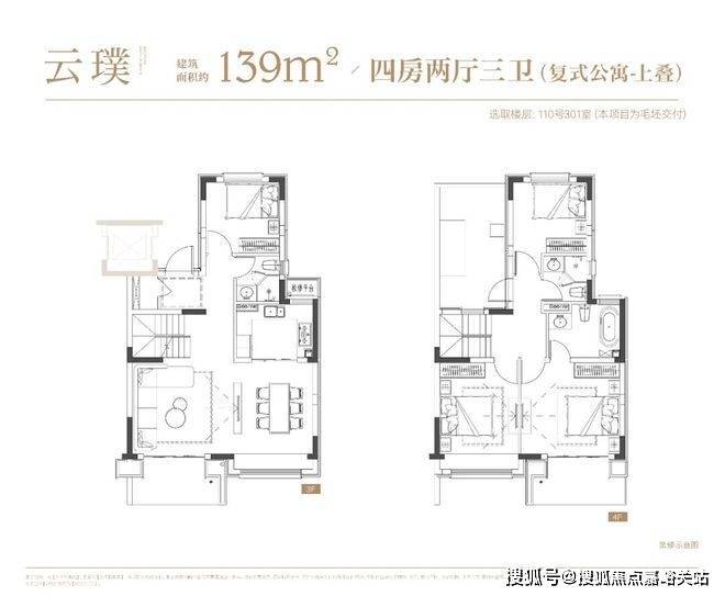 项目叠墅户型有建面约142㎡下叠,建面约139㎡上叠。