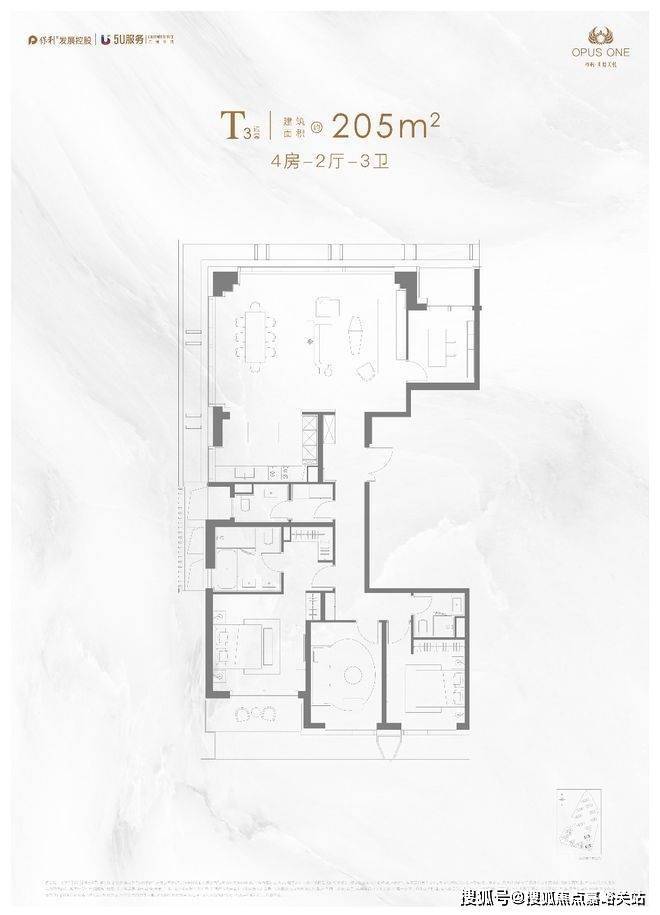 ⑥ 174m²客厅8.2米/奢侈三房/主卧开间5.7米/最小卧室约14m²