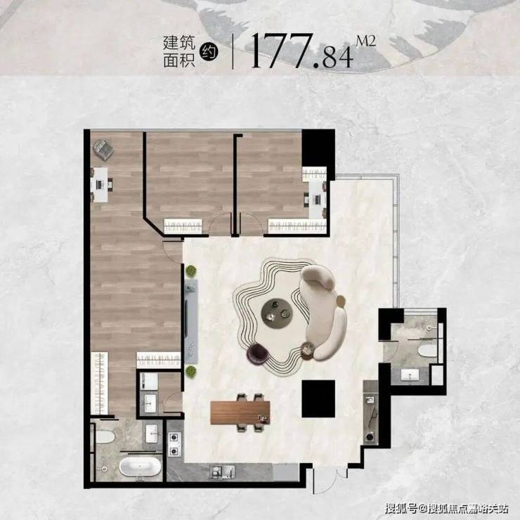 整个项目是由一栋28层5A品质的标准写字楼和一栋13层商务综合楼组成。配备挑空的入户大堂,并均选用高标准建材设备。标准房型面积为178-195㎡,格局方正,使用率超高。