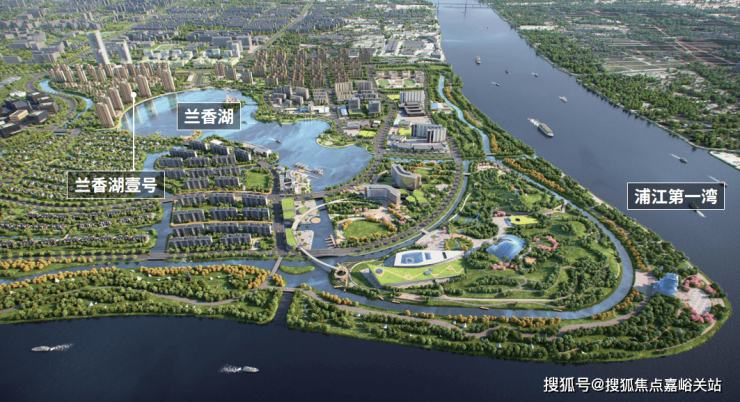 黄浦江从东、南两面环抱整个兰香湖社区, 东北侧有兰香湖作为水系中心,钥匙形的外观寓意“以智慧之钥,开启生活之门”。