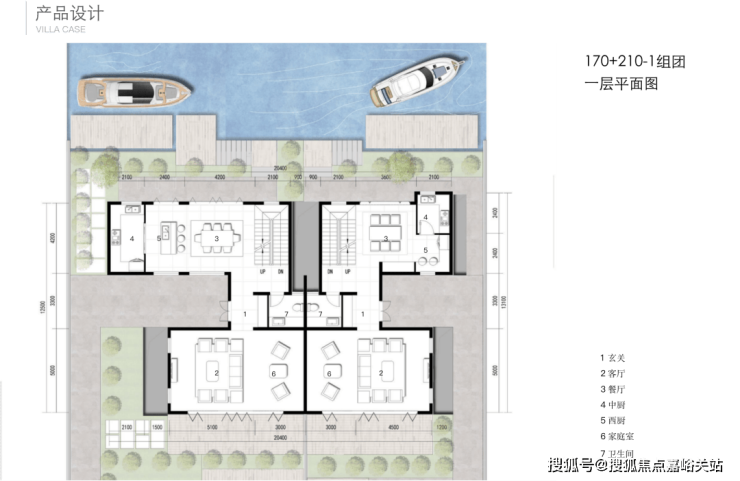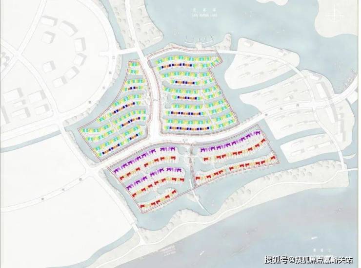 项目从此前曝光的设计方案就可以看出亮点, 每一排别墅前都有一条渠道,引入水系,可以停游艇。