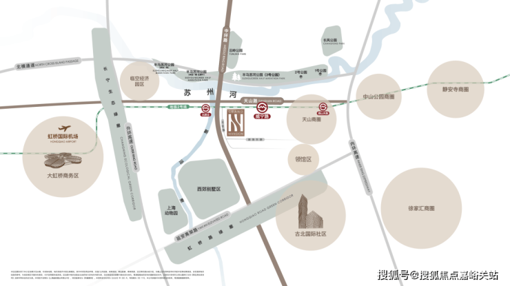 通勤方面,项目直线距离2号线威宁路站约800米、北新泾站约300米,东向2站中山公园,4站静安寺,6站人广。西向3站虹桥机场,4站虹桥火车站。