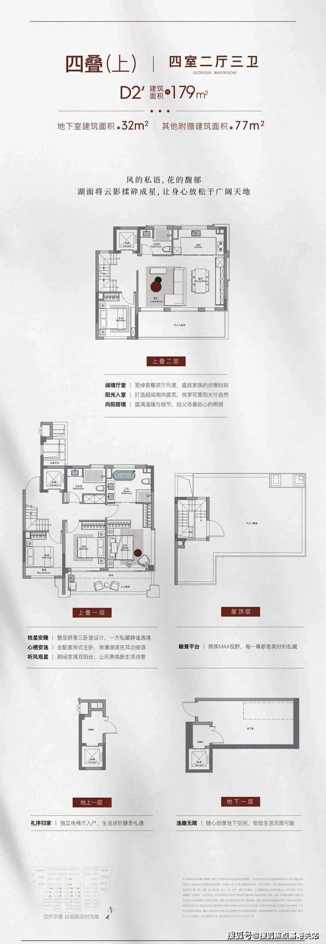 约179㎡四叠别墅上叠户型,有天有地+高得房率+奢阔尺度,买到即赚到!