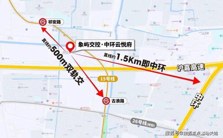 15号线:祁安路1、2号口直线距离约500米;距离古浪路地铁站直线距离约700米左右。