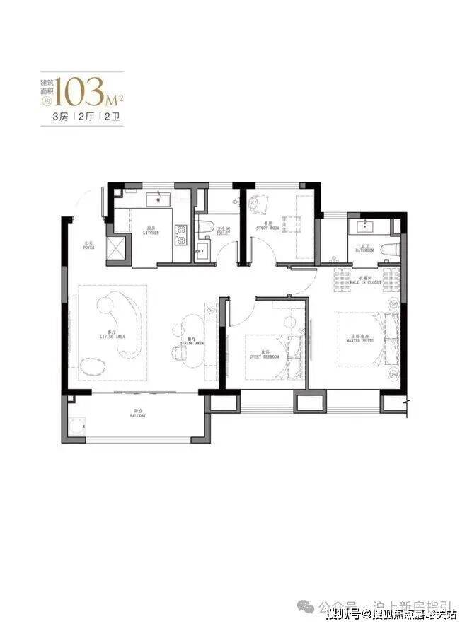 产品: 103㎡、107㎡的三房两厅两卫及123㎡、129㎡的四房两厅两卫。