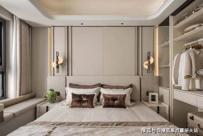 主卧在对称中铺展宁静的诗学,暖白色皮革以细腻的几何肌理层层覆裹墙面,似将温柔的光阴叠入空间的呼吸。窗边,一隅悬浮般的阅读榻临江而设——静坐或闲卧时,目光所及,便是流淌的四季。