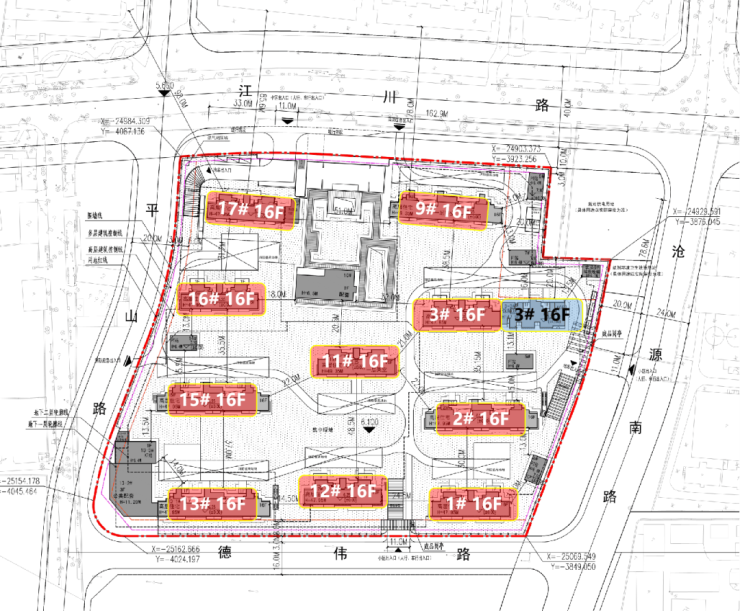 根据项目规划设计方案,项目拟建10幢16F住宅(含保障房)。