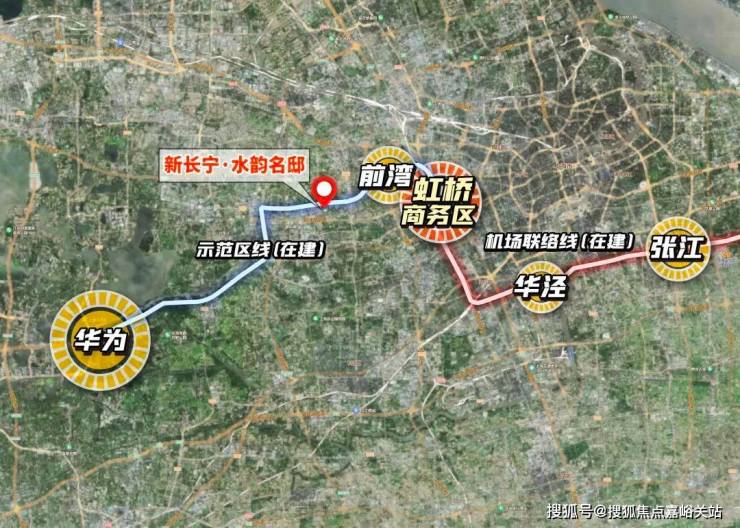 示范区线(在建)西连长三角、华为研发中心,东接大虹桥。从赵重公路站出发,3站虹桥枢纽。