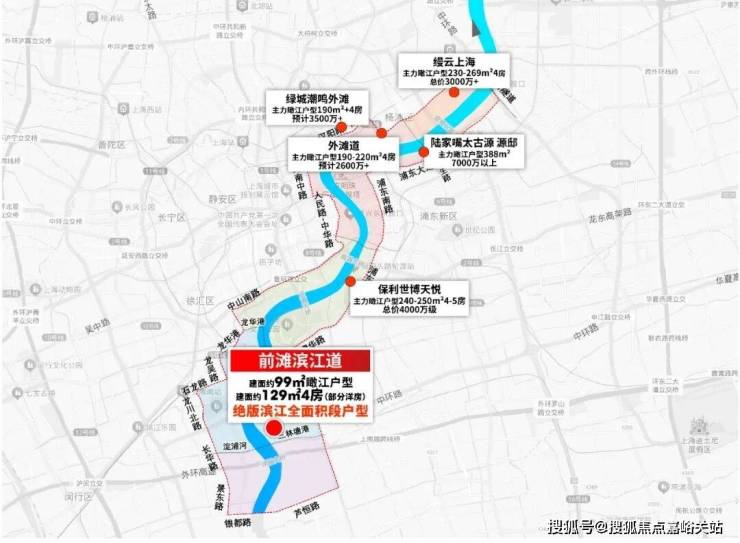 重磅!前滩滨江道建面约89-153㎡3-4房,均价116541元/㎡。