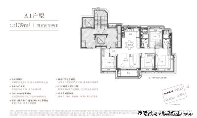 4#楼户型为建面约139㎡四房,中环铂樾售楼处电话:400-8824-258