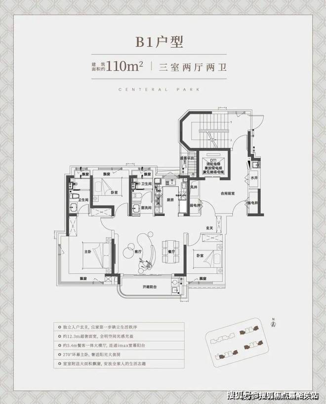 建面约110㎡边套(B1户型),1个宽面阳台、5个飘窗,中环铂樾售楼处电话:400-8824-258