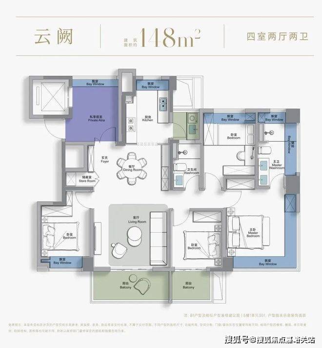 尺度感上:这是新政后松江板块首个四开间朝南、且不封阳台的三阳台户型。