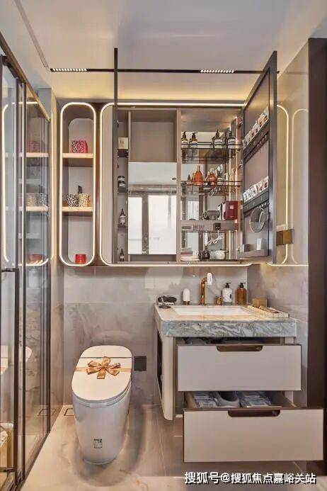 保利天奕特别关注到女性的生活需求,专门在卫生间配备了科勒美颜龙头、美妆镜柜、美妆冰箱,采用“顶+面双补光照明”,能把“女本位”需求做到如此细致,目前没有几个项目能做到!