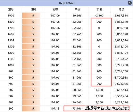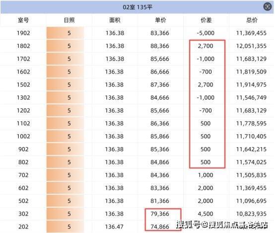 135m²边套户型惊现这次的“彩票房”,2楼单价只要7.9万,真的拼手速!后面新房的y户型都不得有这个价格。中高区的价差也在500元左右,价差较小。