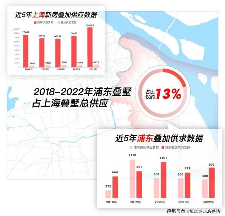 其次,浦东叠墅更少,2018-2022年浦东叠墅供应仅占上海叠墅总供应的约13%。