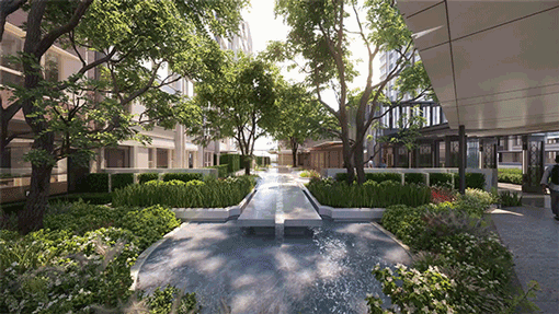 约 4500㎡首层社交花园:位于商业裙楼顶部,通过错层绿化设计,穿插 “树屋” 景观,与住宅架空层、地库光厅形成四重立体景观。
