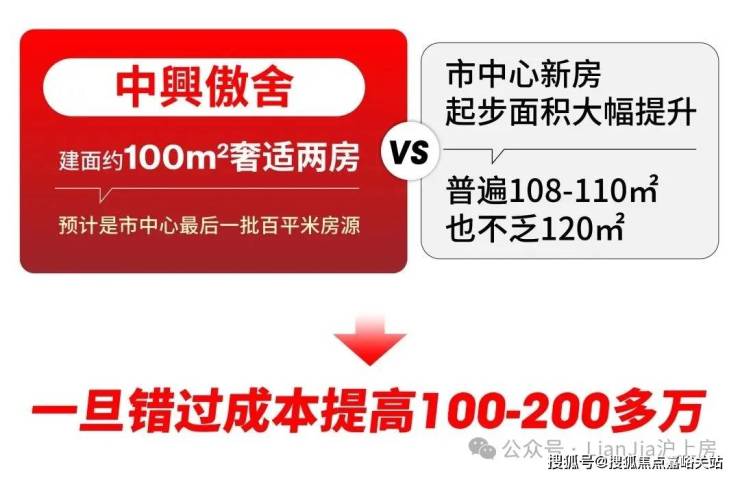 中興傲舍建筑面积约100㎡约1200万级,堪称“千万级门槛入内环”的末班车,也预计是内环最后一批百平米房源。