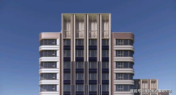 住宅立面也大胆选用珍珠蓝、香槟金、海派砖红等鲜明色彩,搭配约270°圆弧造型,在千篇一律的黑白灰建筑群落中脱颖而出,成为城市美学新地标。