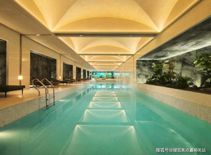 其中,上海首个植物园泳池以皮革面绿色石材营造树影斑驳的秘境氛围:泳池尽头布满真实绿植,墙面选用了绿野仙踪的皮革面绿色石材,营造出一种树影斑驳的都市度假感,更可以与自然的绿植零距离接触。