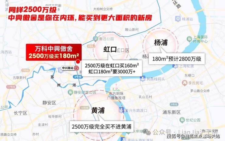 于2500万级购房者,同价位下,中興傲舍建筑面积约180㎡大三房,比虹口、杨浦新盘多出约20㎡空间。要知道,虹口同面积段新盘总价已冲到3000万+。