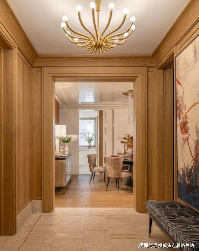 天潼198售楼处电话4008569058☑️☑️硬装上 以木饰面和米色石材做结合,物料原始肌理感,表达经历时间后的沧桑痕迹。大理石地面镶嵌精致金属条,保留材质的原始感,木饰面配柔和灯光,调和出安宁澄澈的归家氛围。天潼198售楼处电话4008569058☑️☑️