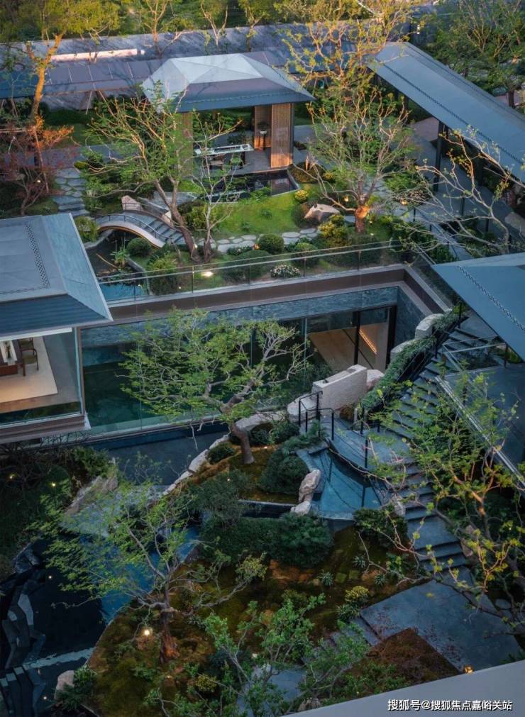 而最令人惊艳的,当属约6米地势差打造的下沉式山水庭院,山、石、水、林有序交织,犹如一幅“豁然开朗”山水轴卷,每一步皆是景致,每一处皆有不同。