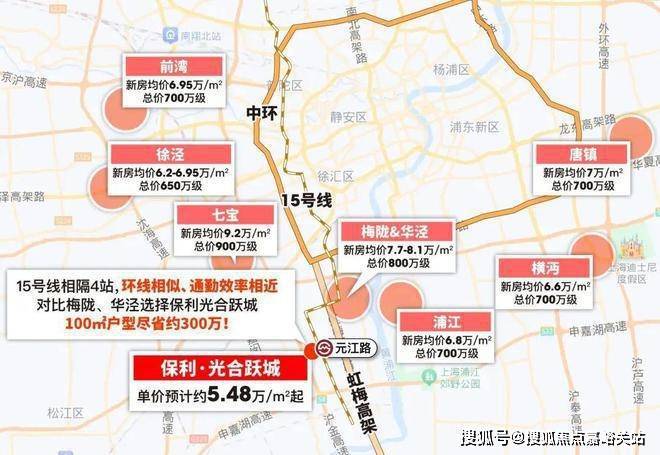 自驾的话,项目紧贴虹梅路高架,3个红绿灯即上中环!凭借虹梅路高架的优势,项目其实和华泾、梅陇、七宝处于同一价值环线。如今梅陇、华泾的新房单价都在8万左右,而保利·光合跃城,距离梅陇华泾仅4站地铁,自驾通勤效率与前者相差无几,100㎡户型几乎能节省近300万,性价比不言而喻!