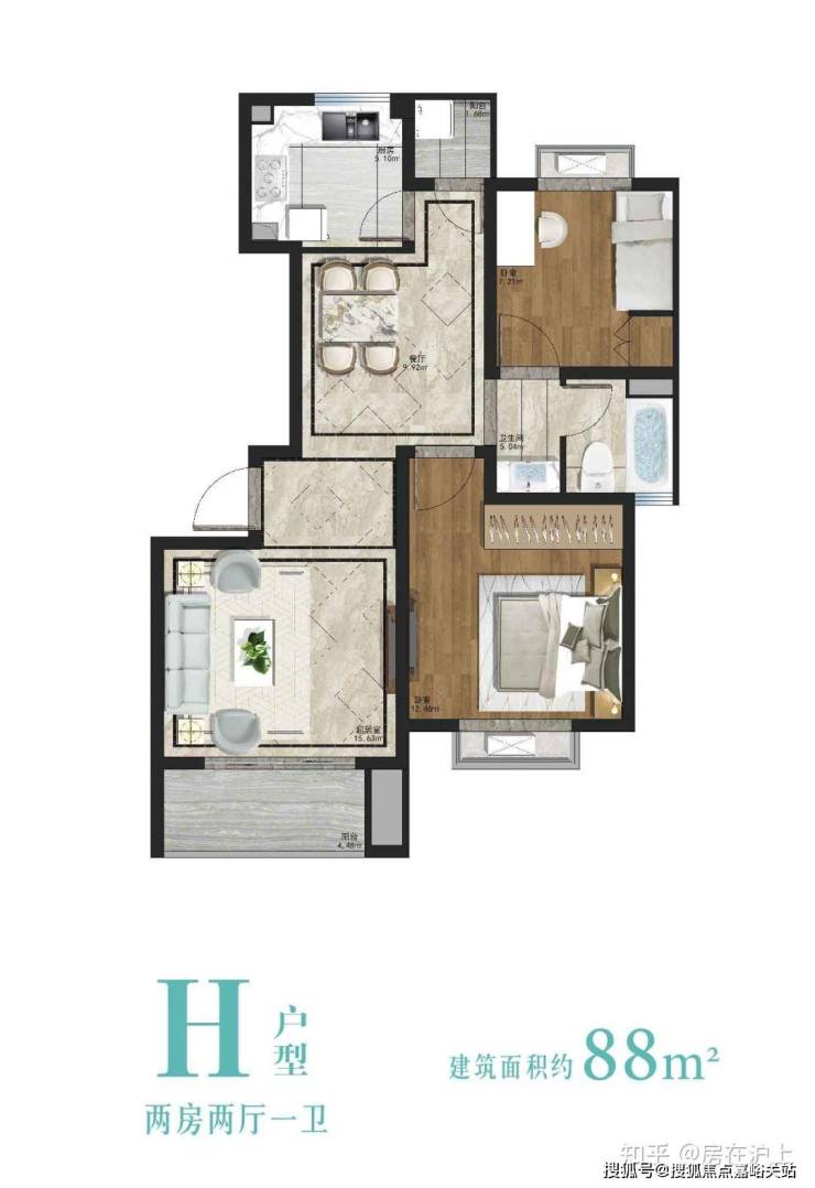 88平方米的两房,双开间朝南,进门有个玄关,不能一眼看到室内,保证了私密性。