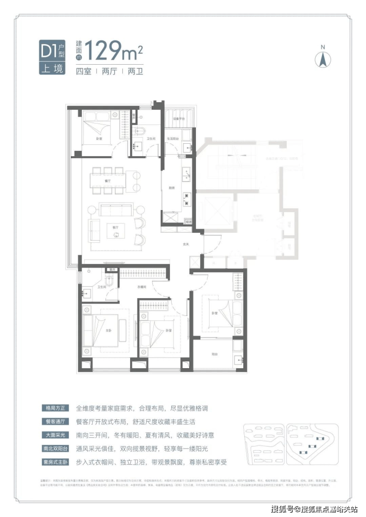 U型厨房、餐厅、客厅、阳台一线联通,南北通透。主卧套房、全卧飘窗、次卫干湿分离也都是标配。