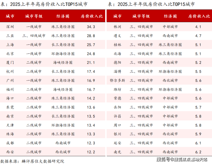 具体到城市,2025上半年深圳房价收入比为34.3,高居首位,受到新房市场土地稀缺性影响,深圳房价居高不下,是国内购房压力较大的城市。