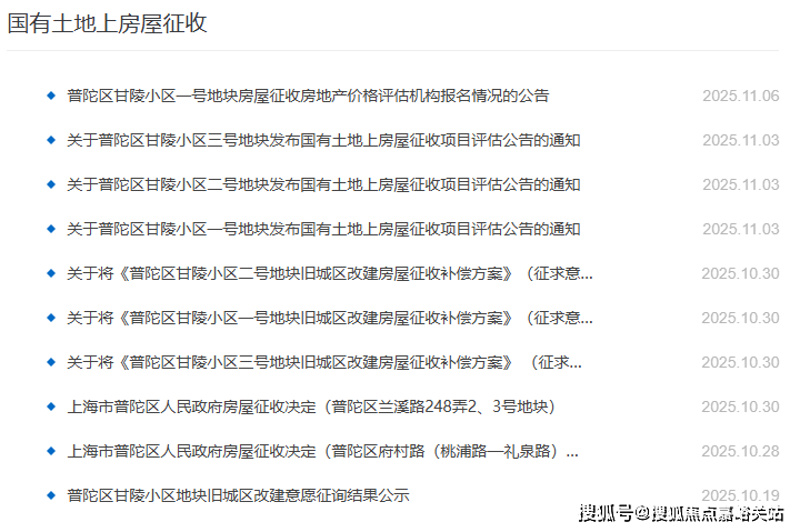 但实际就是,普陀2025年结结实实发了12个房屋征收决定,甚至还搞定了甘陵小区。
