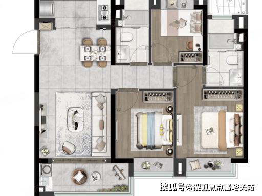 精装三大件:全屋精装配齐中央空调、地暖、新风,省心省力。